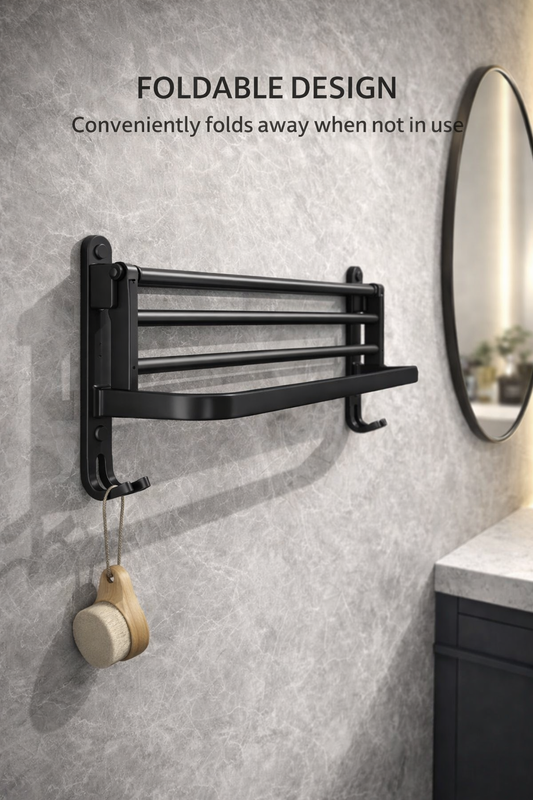 Matte Black Folding Towel Rack